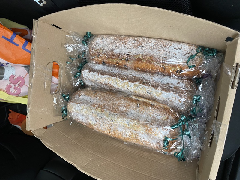 die Klasse 8/9 und ihre Lehrerin Frau Pfaundler backten im Hauswirtschaftsunterricht in der Schulküche köstlichen Quarkstollen.