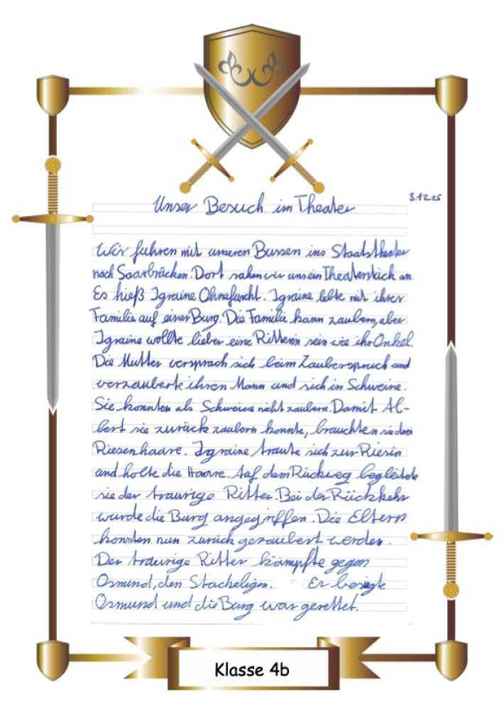 Die Klasse 4b hat einen Bericht über den Besuch im Theater und das Theaterstück verfasst: