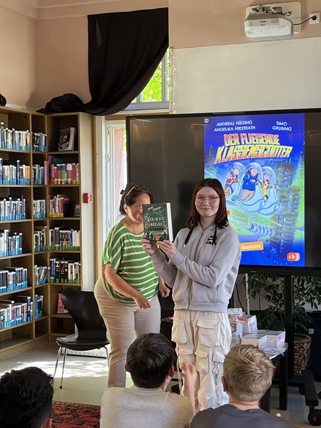 Danach wurden die Lösungsblätter eingesammelt und Fr. Ziegler zog einen Zettel. Die Gewinnerin Zoey durfte sich ein Buch aussuchen. Herzlichen Glückwunsch, Zoey!