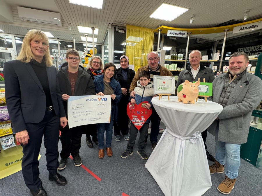 Große Freude herrschte heute, am 15. Dezember 2025, in der Salzbrunnenapotheke in Sulzbach: Im Rahmen der Spendenaktion „Kinder in Sulzbach freuen sich“ durfte sich die Staatliche Förderschule Sprache über eine großzügige Spende in Höhe von 1.000 Euro freuen.