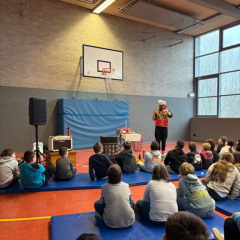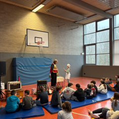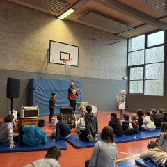 Am vergangenen Freitag erwartete unsere Schülerinnen und Schüler der Klassen 1 bis 4 ein ganz besonderes Highlight: Clown Lolek war mit seinem fröhlichen Weihnachts-Mitmachtheater zu Gast in unserer Sporthalle.