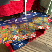 Nach einem kurzen Stopp an der Grundschule Rastpfuhl (auch hier hatten Kinder Kunstwerke angefertigt) fuhren wir alle nach Saarbrücken.