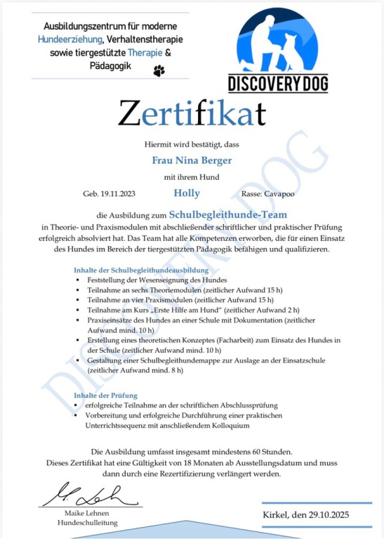 Holly ist geprüfter Schulhund
